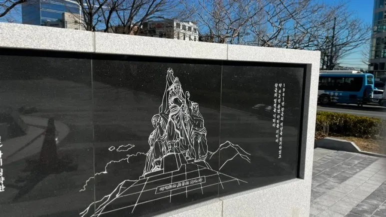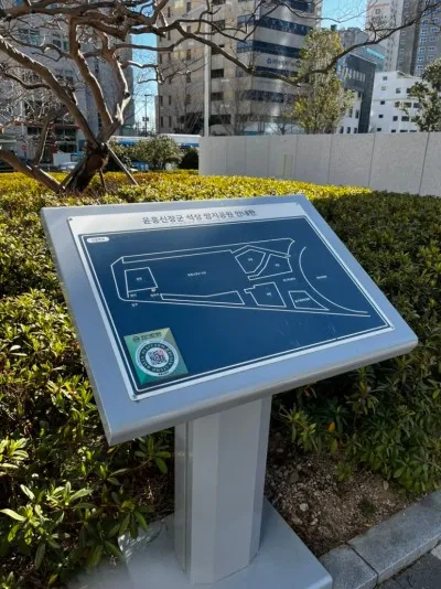 윤흥신 장군 석상 쌈지공원 안내판과 더불어