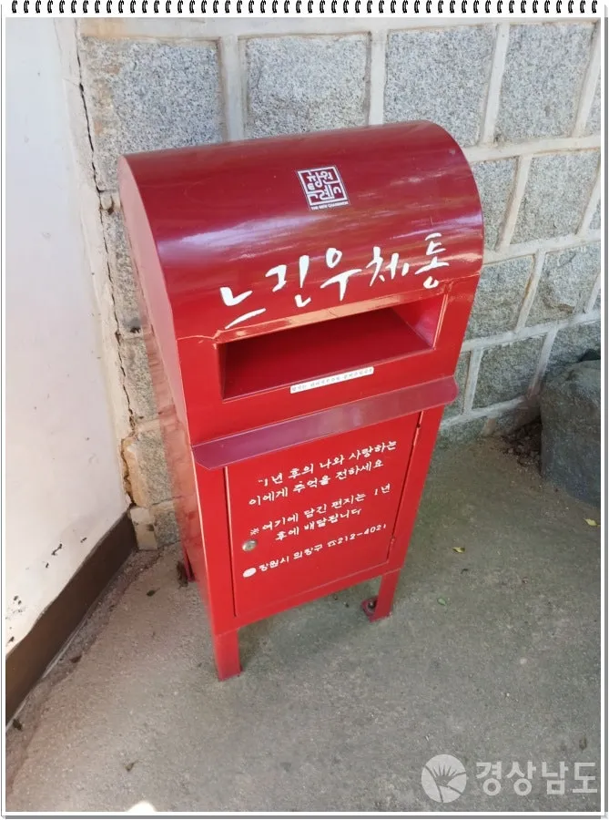 입구 한켠에는 빨간 우체통이 하나 있습니다.