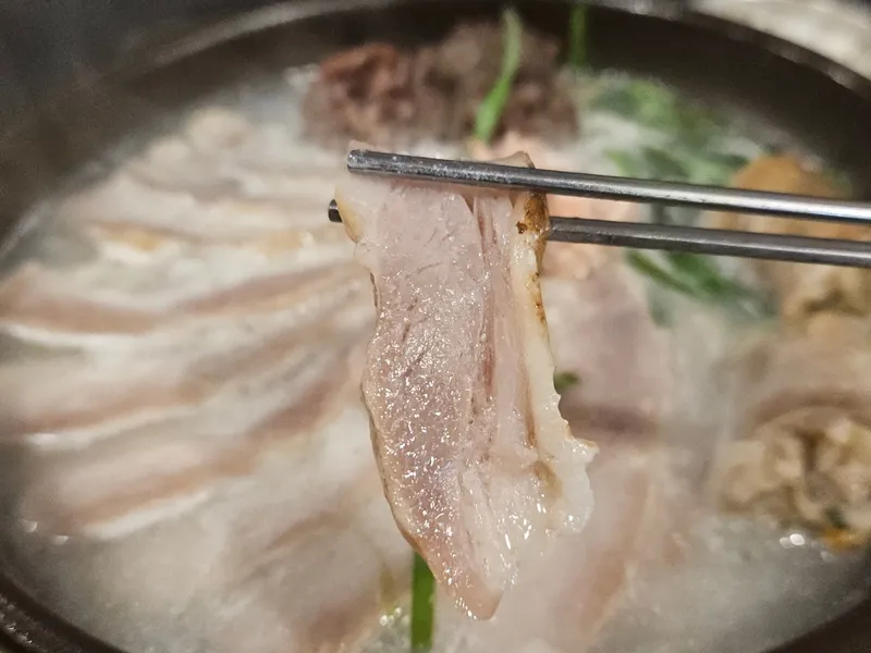 돼지 살코기가 가득 들어 있는 돼지국밥을 먹으니 만족스러운 식사였습니다.