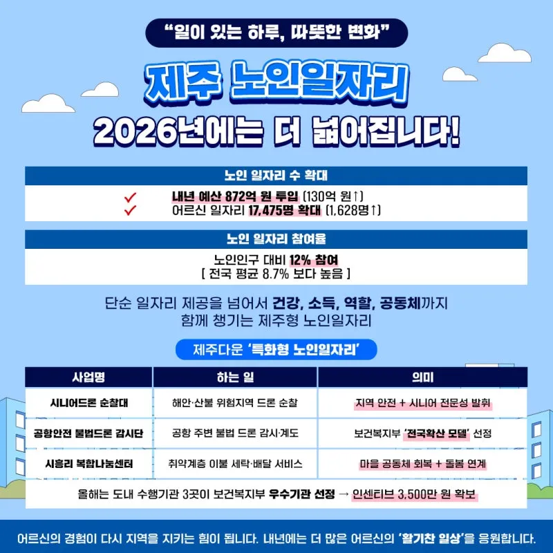 제주 노인일자리, 내년에 더 넓고 더 든든해져요!
