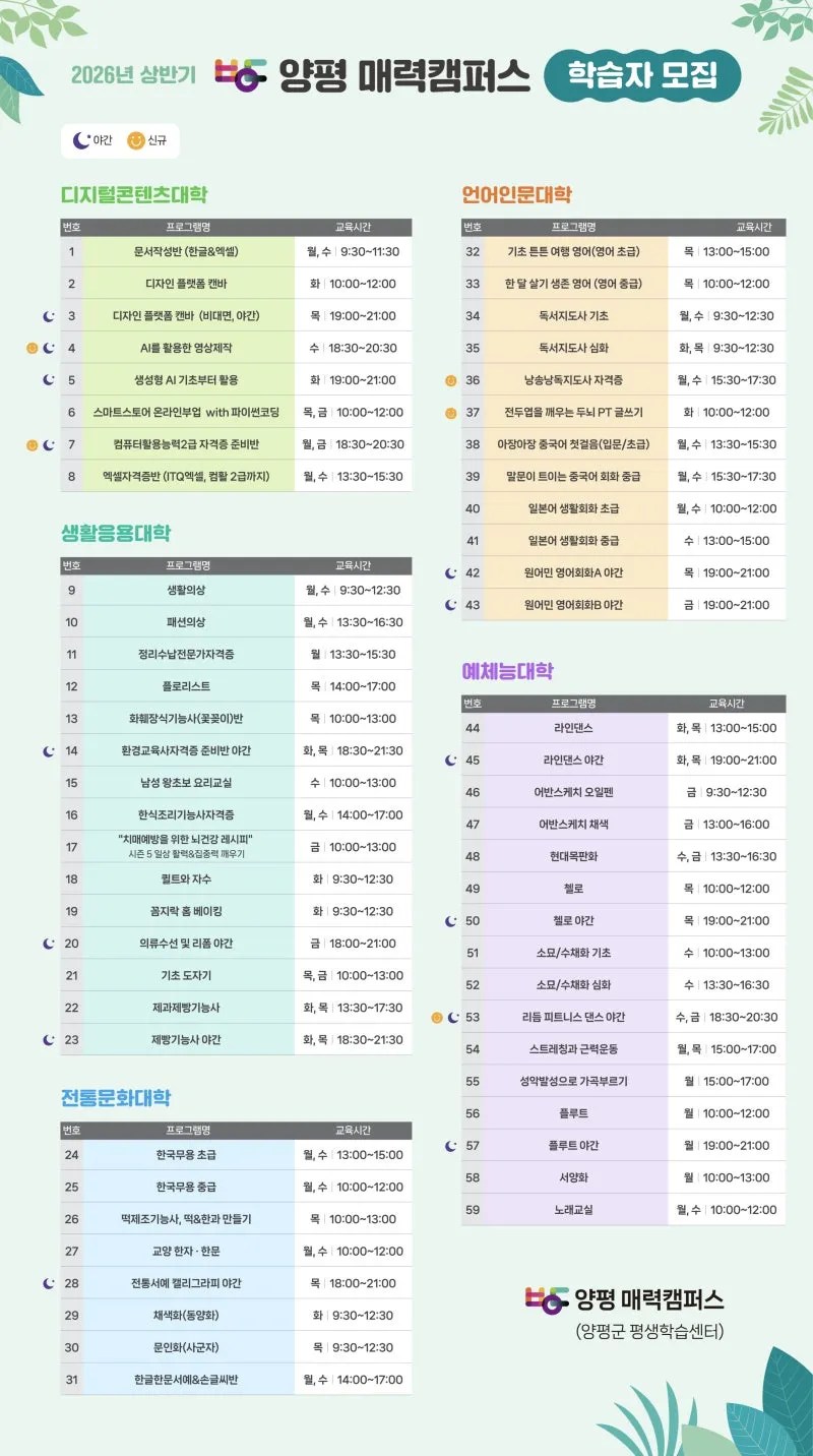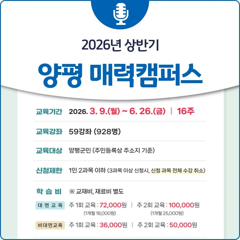 2026년 상반기 양평 매력캠퍼스 프로그램 학습자 모집