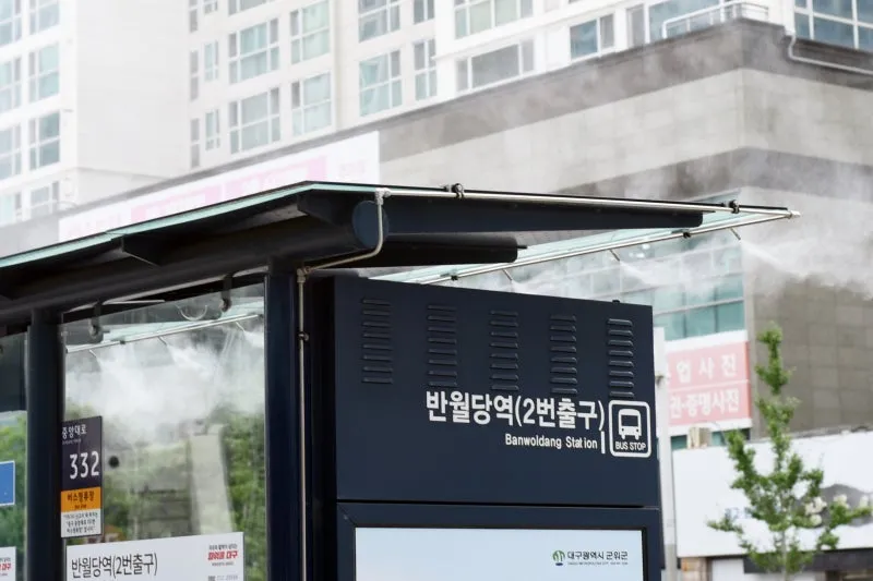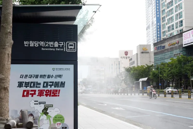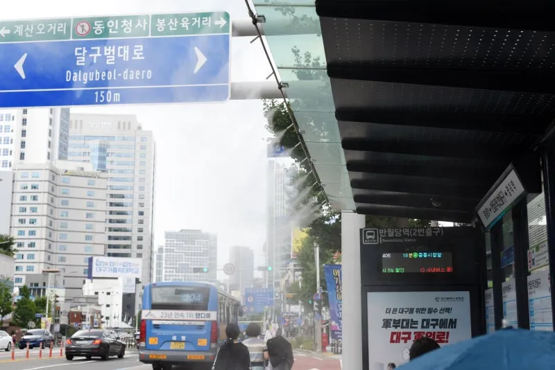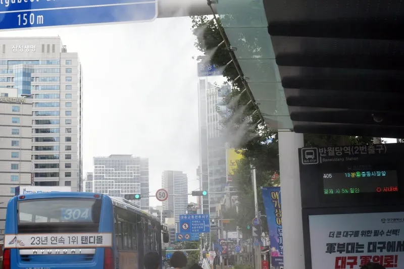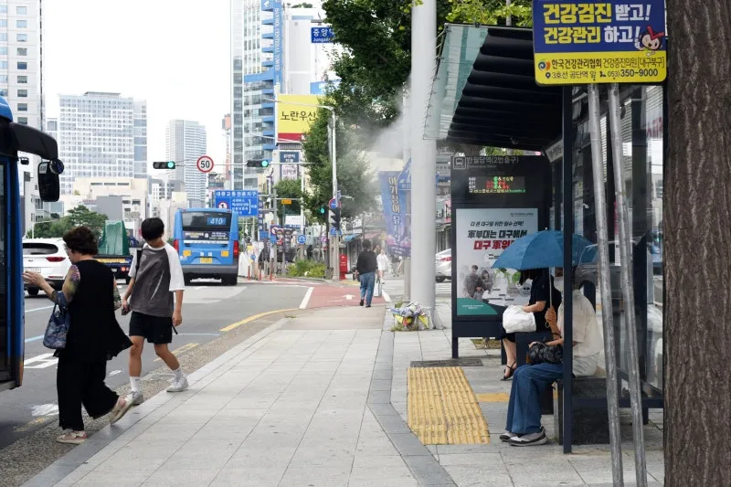 한여름 더위도 이겨내는 대구 중구 '쿨링포그 버스정류장'