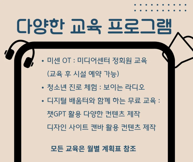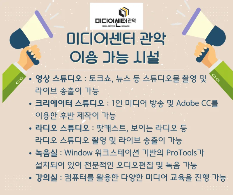 관악 미디어센터 시설, 교육프로그램 및 대관 관련 내용을 카드뉴스로 만나보세요~