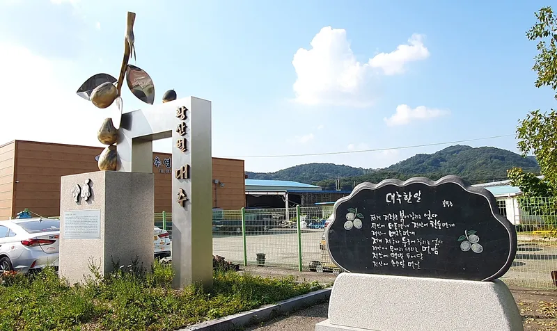 그런데 이곳 조각에 붙어있는 대추 캐릭터가 백중놀이전수관 앞의 조각에 붙어있는 대추 캐릭터와는