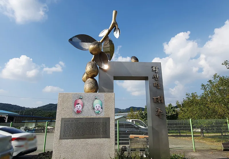 이곳에 있는 황산벌 대추 조각은 연산백중놀이전수관 앞의 주차장 옆에 있는 '황산벌 대추' 조각과 같은 작품입니다.