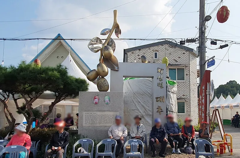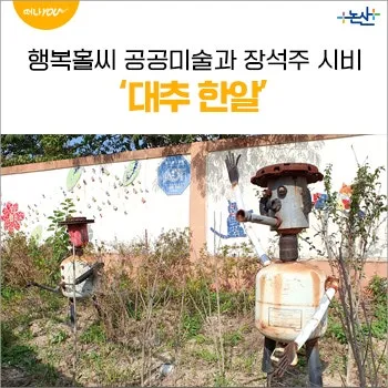필자가 연산백중놀이전수관 앞에 있는 조각에서 대추 캐릭터를 복사해서 사진에 편집해 보았습니다~^^