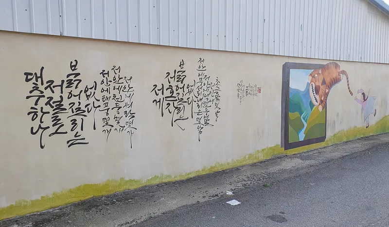 벽화 옆에는 멋진 글자로 쓴 시화도 있습니다.