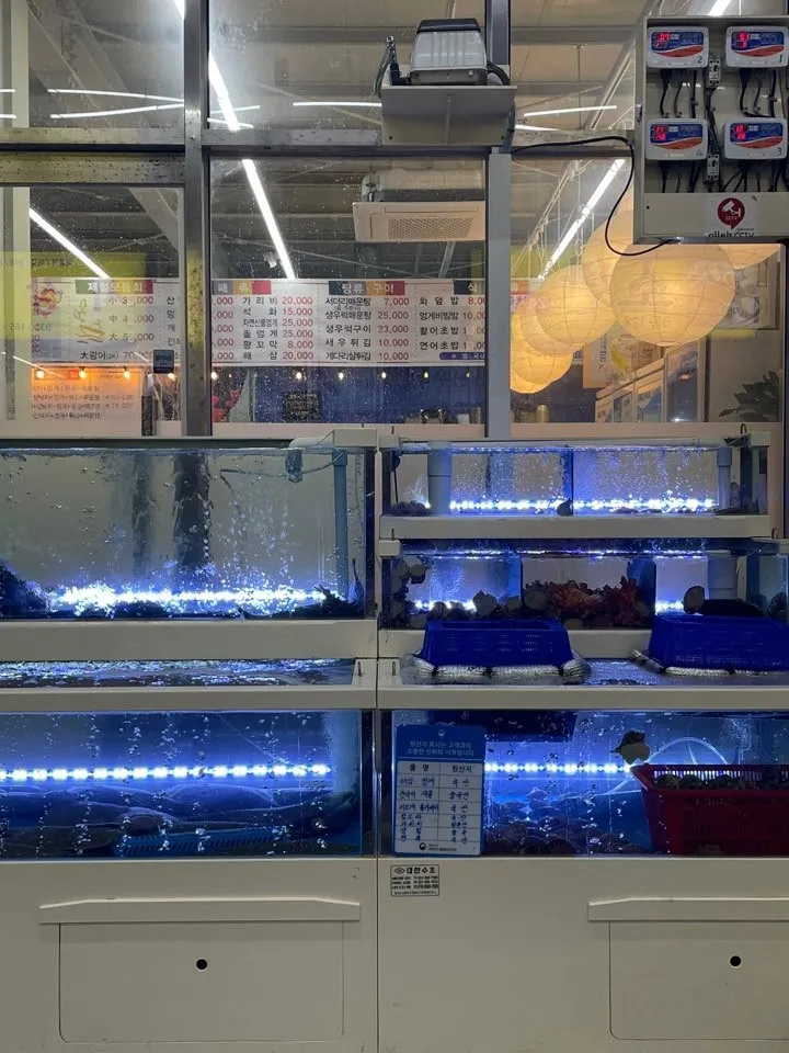 수산동 15개소의 🐟활어, 🦀대게, 🦎장어 등