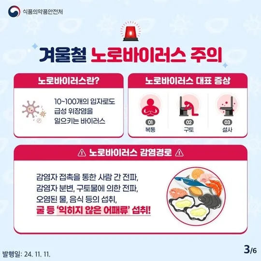 겨울철 발생하는 노로바이러스 식중독 감염의 원인이 되기도 합니다.