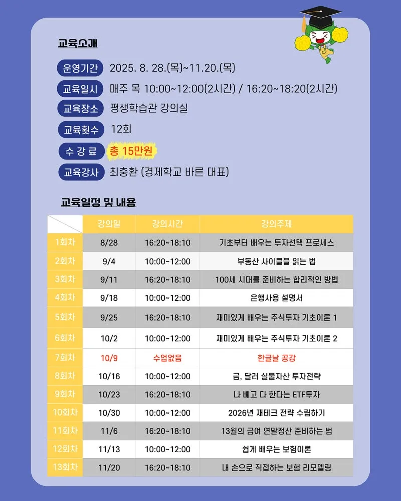 📅 교육기간: 2025. 9. 23 ~ 12. 9 (매주 화요일 13:30~15:30)