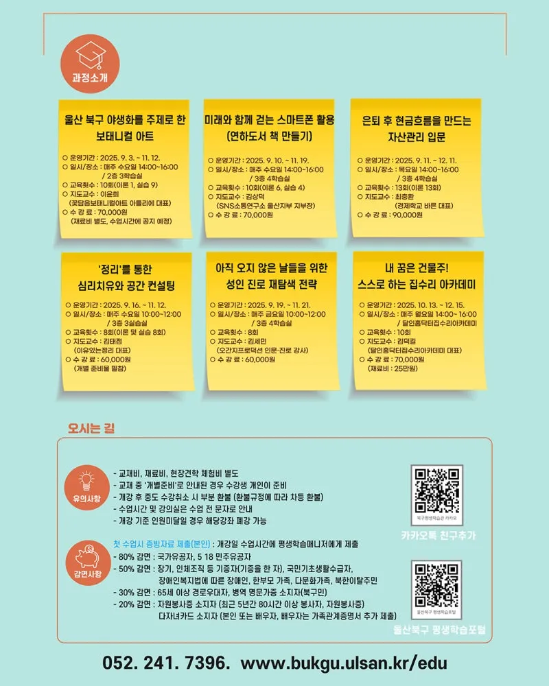 🎓 2025 북구 평생학습대학 하반기 특별과정 수강생 모집!
