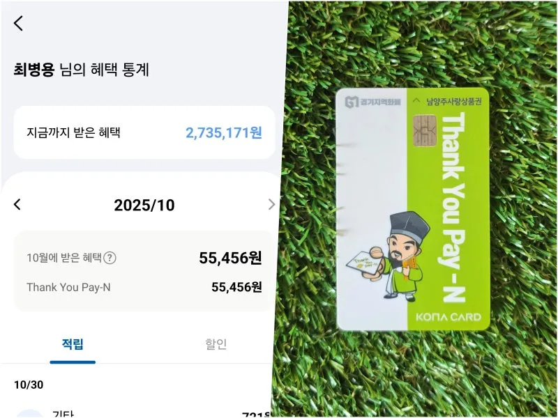 남양주사랑상품권 결제 시 5% 캐시백 (1인 2만원 한도) 중이니 많관부!!!