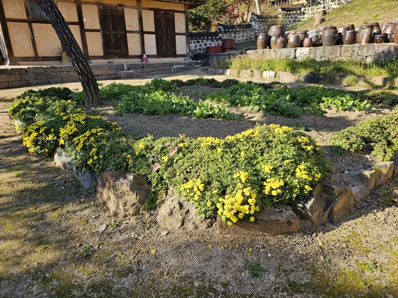 국화꽃이 활짝 피어난 장독대도 고택의 멋스러움을 한껏 올려주네요.