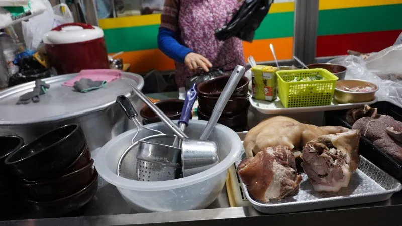 뜨끈뜨끈한 순댓국에서 김이 피어오르고