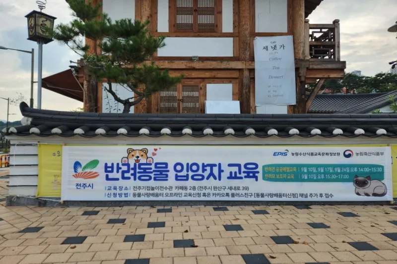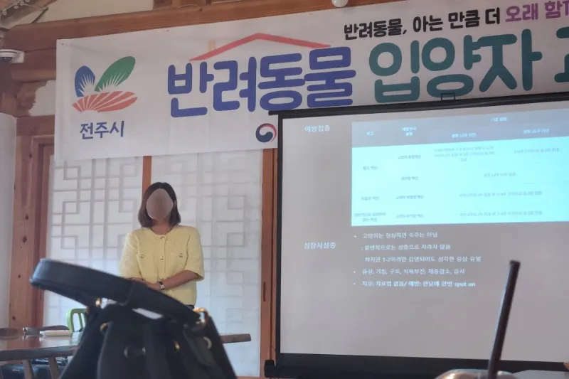 반려동물 입양자 교육은 농림축산식품부와 전주시에서 함께 진행하는 교육 사업으로 동물보호 센터에서 동물을 입양할 예정인 시민, 1년 이내 보호동물을 입양한 시민이면 누구나 수강할 수 있는 교육입니다.