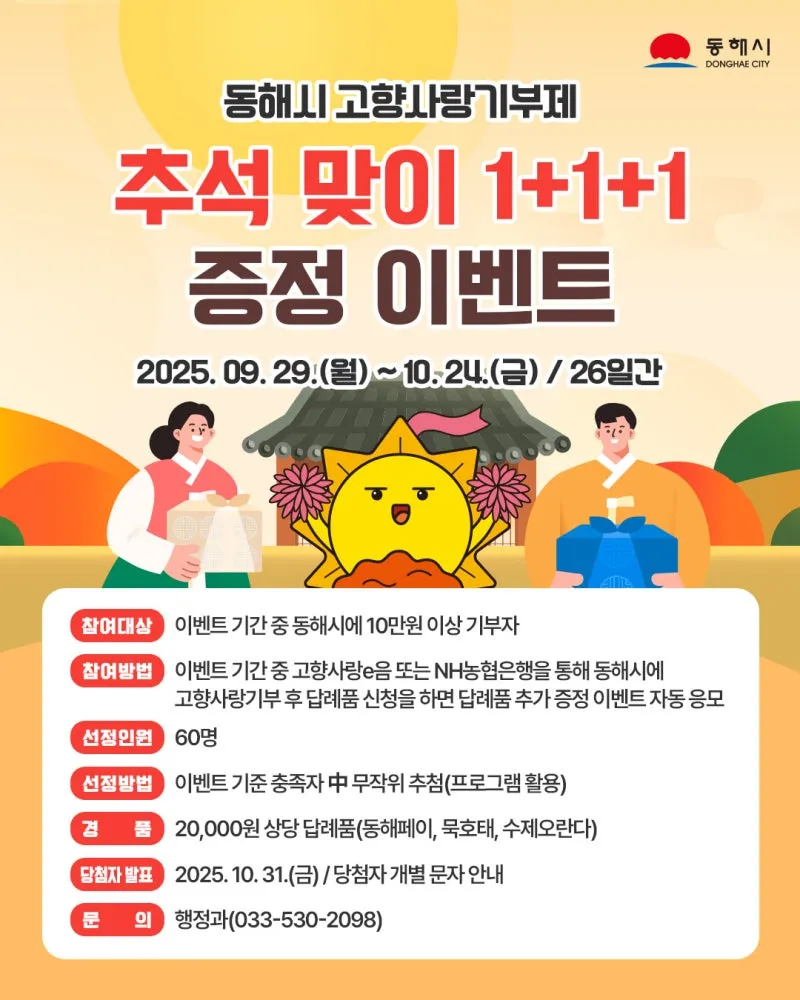 동해시 고향사랑기부제 추석 맞이 1+1+1 증정 이벤트