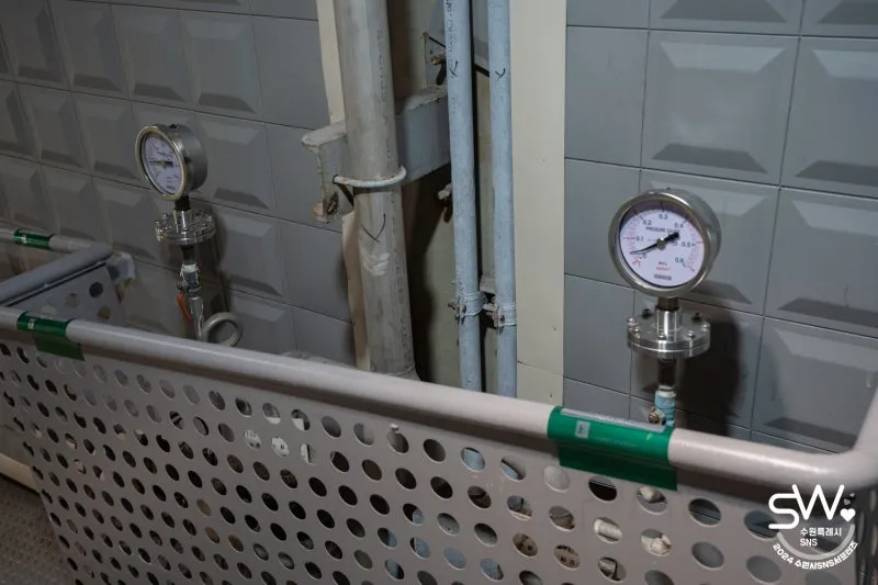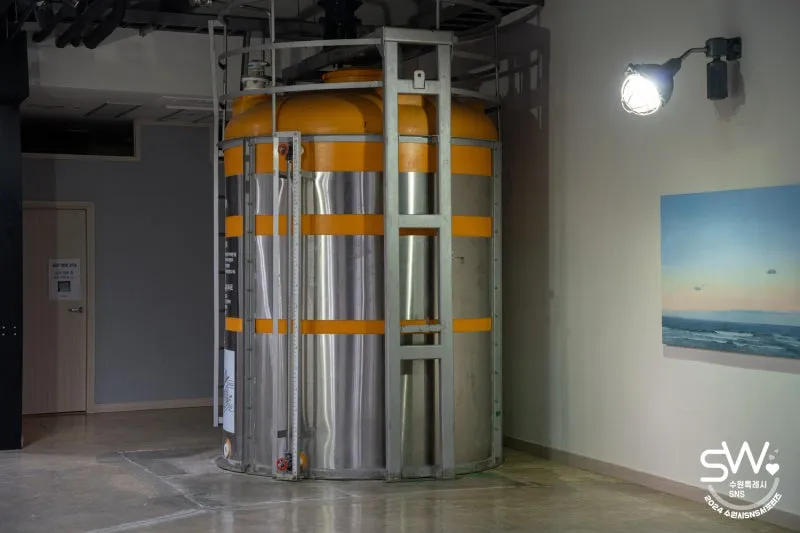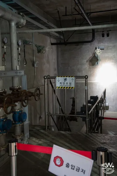 지하 1층으로 내려가자마자 약품탱크가 보입니다. 사용감이 느껴지지 않는 겉면에는 고색동에 대한 이야기가 새겨져 있는데요.