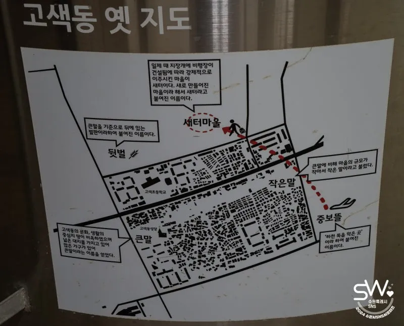 고색동 옛지도도 있어 살펴 봤는데요. 고색동은 큰 말, 작은 말, 중보뜰, 뒷벌, 새터 등 5개의 자연마을로 구성되어 있다고 합니다.