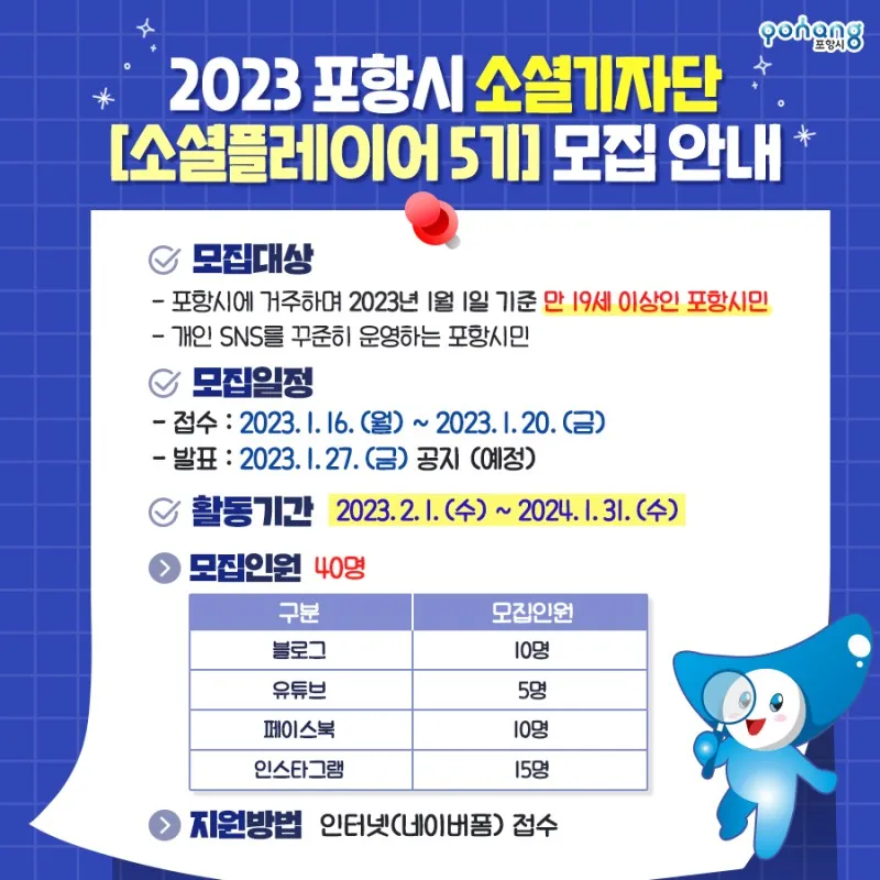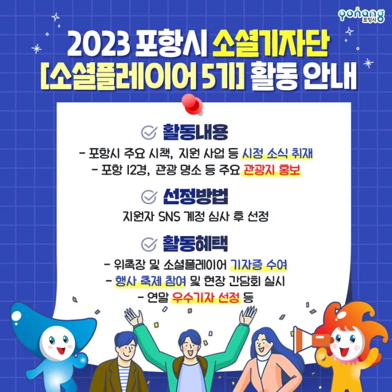 2023 포항시 소셜기자단, [소셜플레이어 5기] 모집 안내!