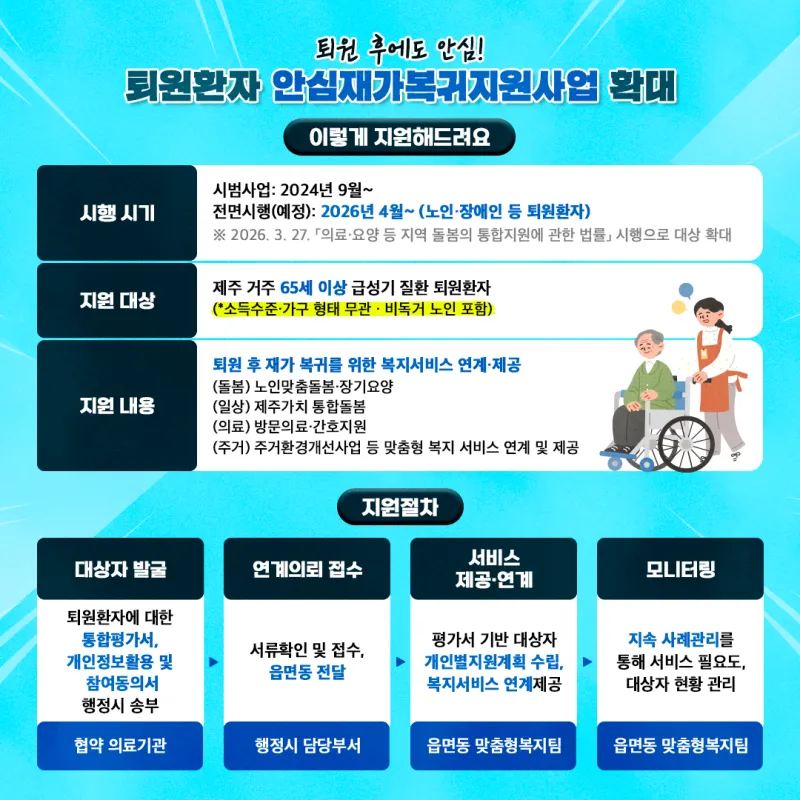 퇴원환자 안심재가복귀지원사업은 의료, 돌봄, 주거, 일상 지원 등
