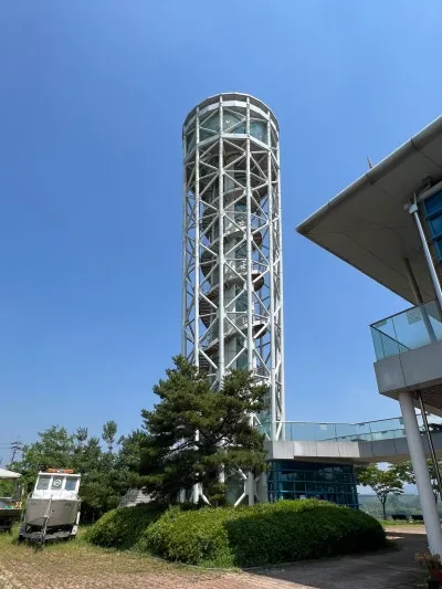 왼쪽에 하얗고 높은 전망대가 먼저 눈에 들어옵니다.