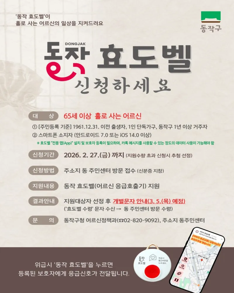 동작구에서 효도벨(응급호출기) 지원 사업을 진행합니다 🙌