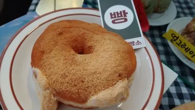 선일 카페에서는 인절미 콩가루가 묻어있는 도나쓰가