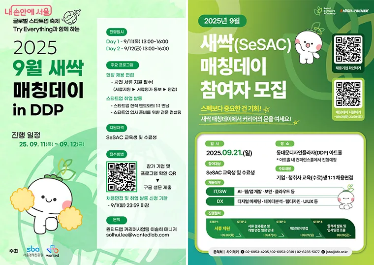 제4회 매칭데이(9.11.~12)는 글로벌 스타트업 축제 ‘Try Everything 2025’와 연계해 22개 혁신 스타트업이 56개의 채용 기회를 제공하며, 사전 서류전형을 통과한 교육(수료)생과 기업 간 1:1 현장 면접이 진행된다. 또한, 부대행사로 ‘스타트업 취업쌀롱’이 운영되어 스타트업 현직자 및 HR 담당자, 전문 컨설턴트와 함께하는 1:1 멘토링과 취업 컨설팅이 제공된다.