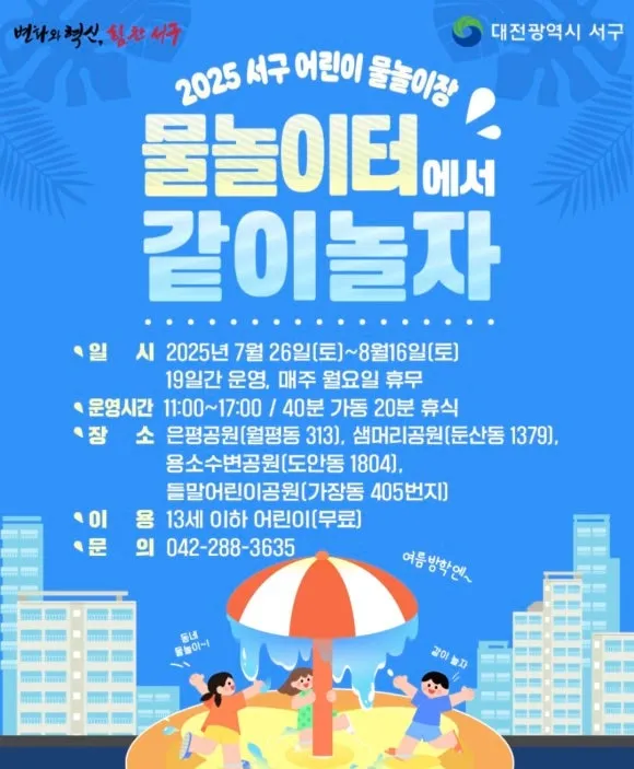 올 여름 피서는 이곳으로! 대전 서구 어린이 물놀이장 은평공원, 샘머리공원 추천