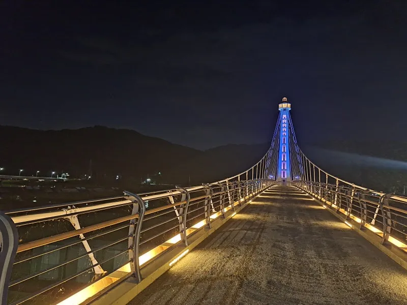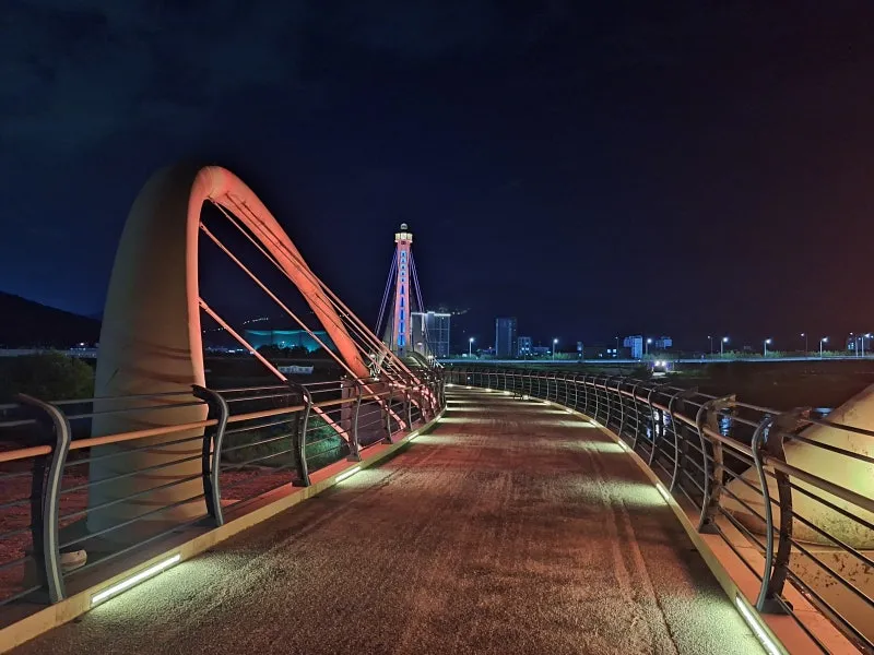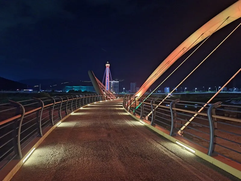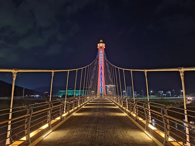 다리 중앙에 위치한 등대를 연상케하는 탑은 다양한 색으로 변하며 멋진 야경을 연출해 줍니다.