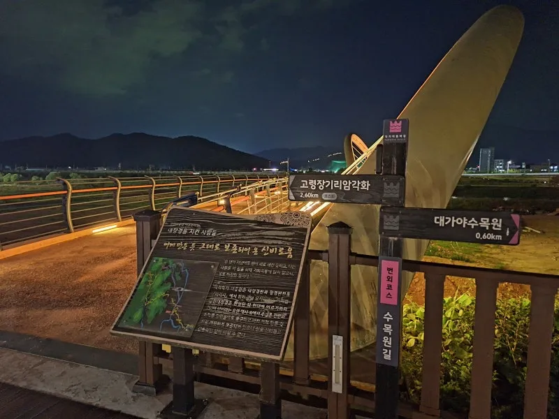 팔만대장경 이운 순례길이었던 대가야교 앞으로 세워진 표지판을 읽어보며 역사에 대해 알아가는 시간도 가질 수 있었어요. 대가야교는 부근에 고령 장기리 암각화, 대가야 수목원이 위치해 있습니다.