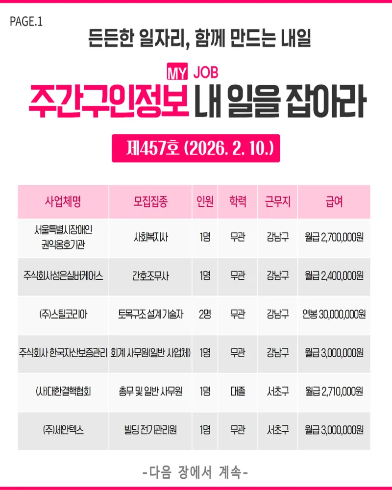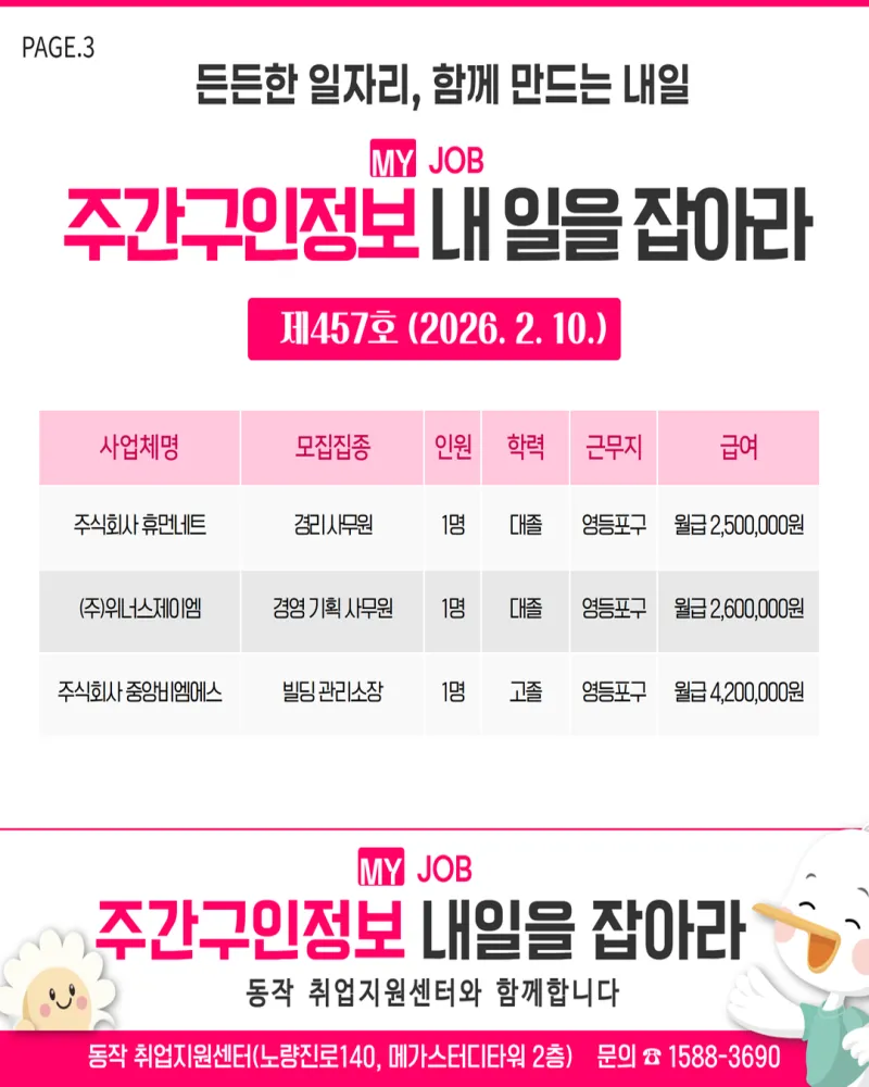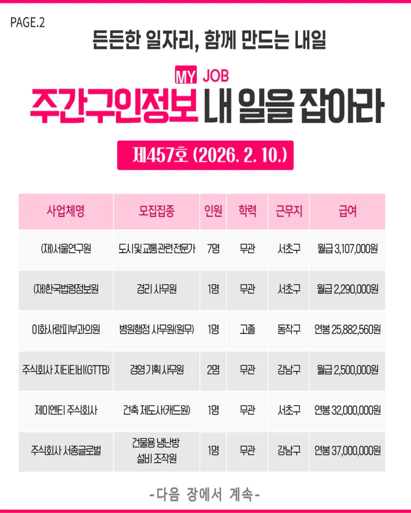 주간구인정보 내 일을 JOB아라 제457호 (2026.2.10.)