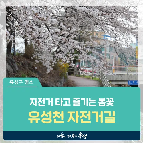 오늘은 대전 자전거 타고 즐기는 유성구 벚꽃 명소 유성천 자전거길을 소개해 드렸습니다. 자전거를 타고 벚꽃 구경을 하기에도 좋고 유성천변을 따라 산책이나 운동하기 에도 좋은 코스였습니다.