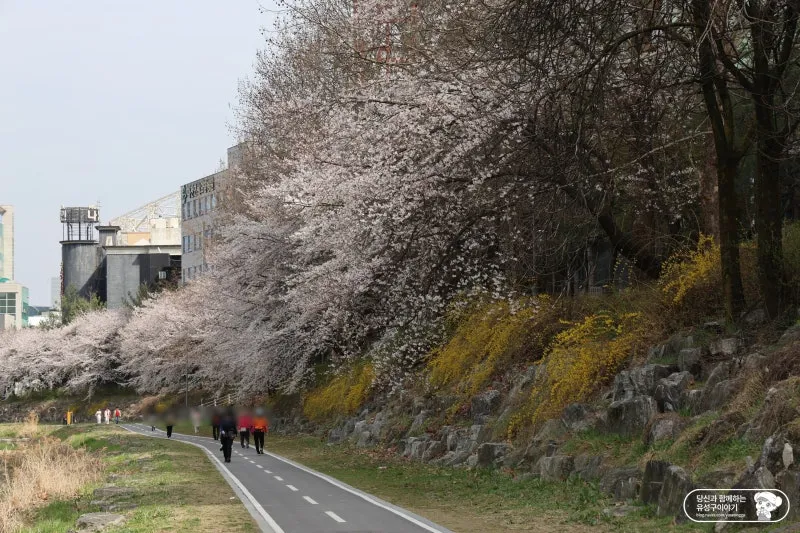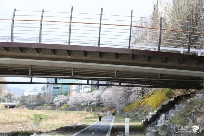 자전거 타고 즐기는 유성구 벚꽃 명소 유성천 자전거길은 양쪽으로 자전거길과 도보로 이동 가능한 산책로가 있었습니다. 천변 산책로를 따라 만개한 벚꽃을 구경할 수 있었습니다.