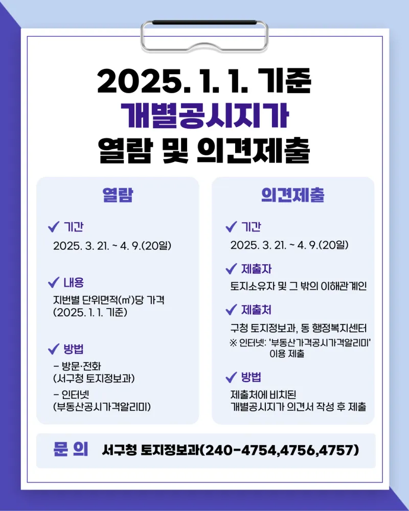 2025. 1. 1. 기준개별공시지가 열람 및 의견제출