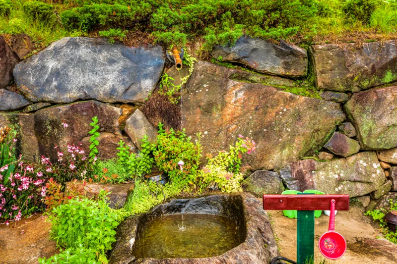 아미산에는 18개의 암자가 있었다고 전해집니다. 천태암이 자리한 목사동(木寺洞)면의 이름에 고스란히 담겨 있어요. '나무 목(木)'자를 파자하면 '열십(十)', '여덟 팔(八)'이 되어 '열여덟 개의 절(十八寺)'이 있다는 뜻이 됩니다. 그런데 지금 아미산에는 천태암만 유일하게 남아있어요. 천태암이 지난 1300년 동안 명맥을 유지할 수 있었던 이유는 어렵지 않게 찾아볼 수 있어요. 우선 천태암은 거의 산 정상에 자리한 절 치고는 물이 풍부합니다. 천태암이 사용하는 석간수의 원천은 해발 550미터, 정상 바로 아래 있는데 아무리 가물어도 마르지 않고 끊임없이 흘러나옵니다. 그 물이 어디서 나오는 건지 과학으로 쉽사리 수긍이 되지 않는 불가사의한 현상이 천태암에서는 일상입니다.^^