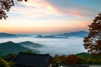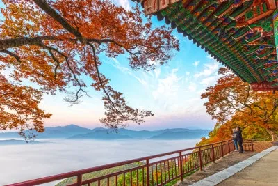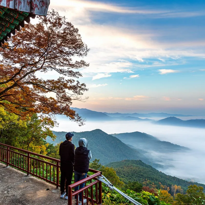 단풍과 운해가 어울려 기가 막힌 풍경을 만들어 냅니다.