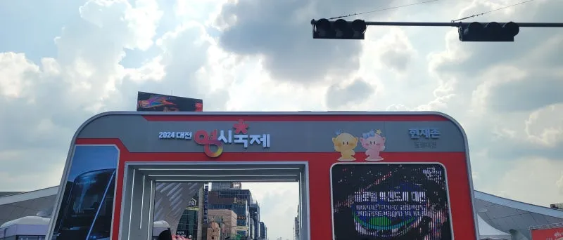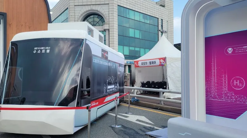 0시축제 앞에 설치된 것은 수소트램입니다.