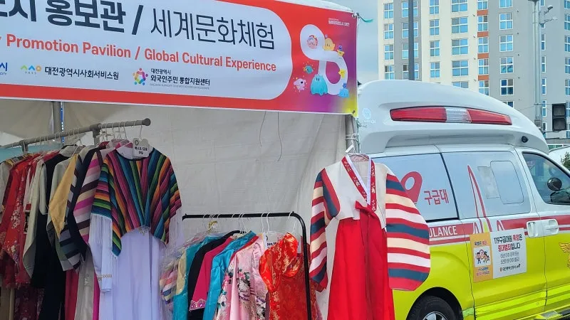 자매우호도시 홍보관에는 세계의상을 입어볼 수 있도록 되어있어요.