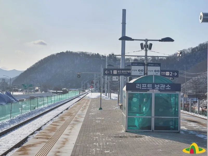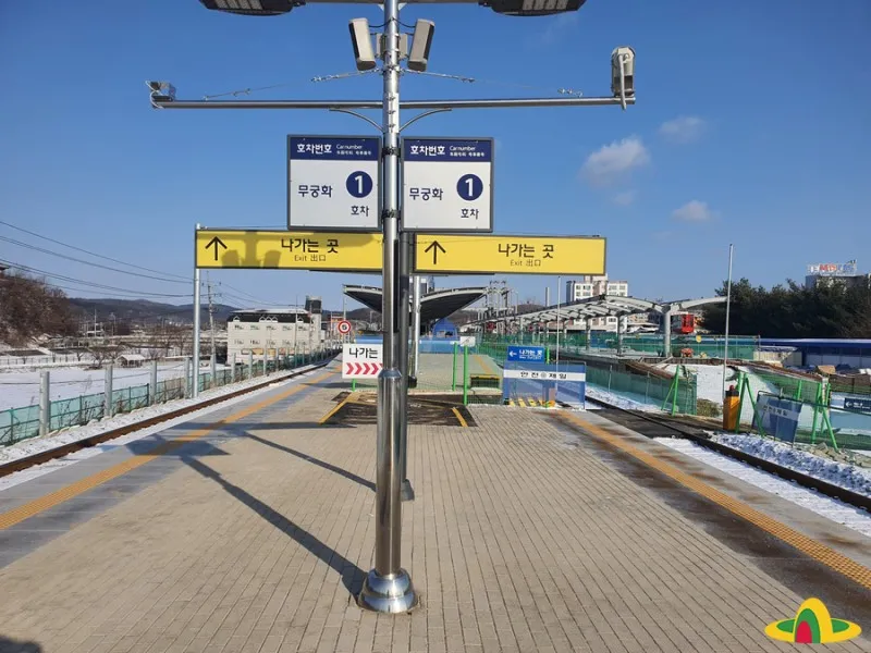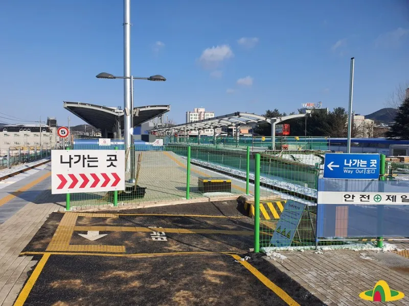 아직 공사 중인 의성역은 긴 터널처럼 생긴 길을 걸어 플랫폼으로 향합니다. 나가는 곳과 타는 곳의 표시가 잘 되어 있어서 따라가시면 됩니다.
