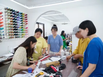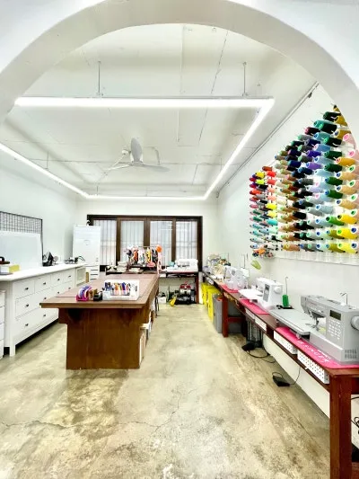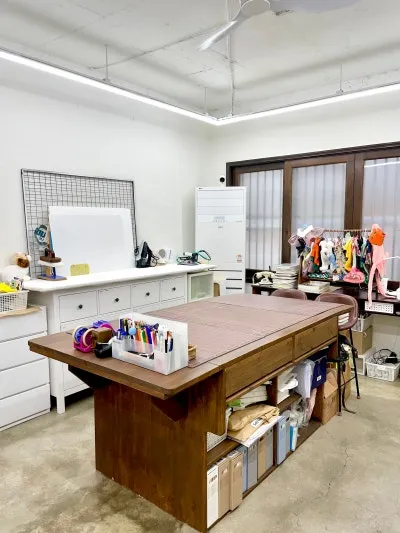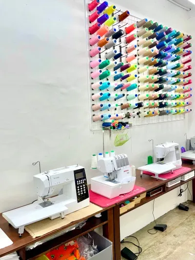 모모부띠크에서 진행되는 클래스를 참관해 보았습니다. 넓은 재단 테이블과 전문적인 재봉틀이 갖춰져 있어, 초보자도 디자이너처럼 작업에 몰입할 수 있는 환경입니다.