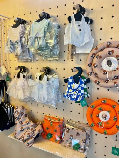 아늑한 쇼핑 공간도 함께 마련되어 있는데요. 프리미엄 펫 패션 브랜드인 '모모부띠끄'와 캐주얼 라인 '희희(heehee)'의 제품들이 정갈하게 디스플레이되어 있어, 반려견의 옷을 직접 눈으로 보고 질감을 확인하며 바로 구매도 가능합니다.