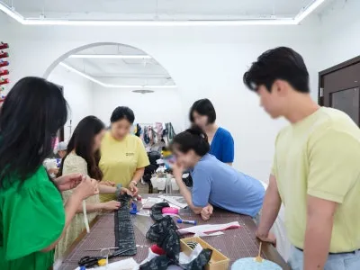 벽면을 가득 채운 형형색색의 실타래들은 모모부띠끄가 추구하는 다양한 디자인과 색감을 상징적으로 보여줍니다. 현직 디자이너의 작업실다운 전문성을 느낄 수 있었는데요. 수강생들이 옷감을 직접 만지고 재단하는 모습처럼, 단순히 따라 하는 것이 아니라 옷의 구조를 이해하며 나만의 펫 패션을 완성해가는 과정이 인상적입니다.