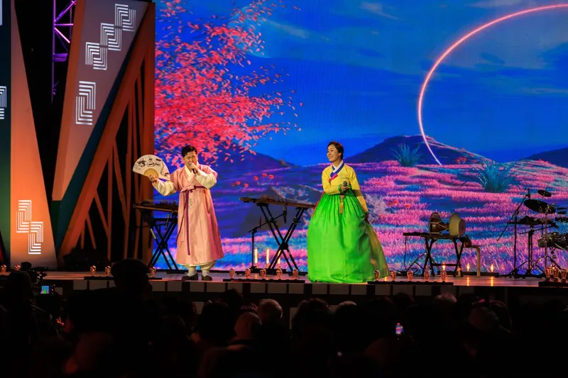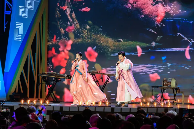 화사한 의상을 차려입고, 구수한 국악연주와