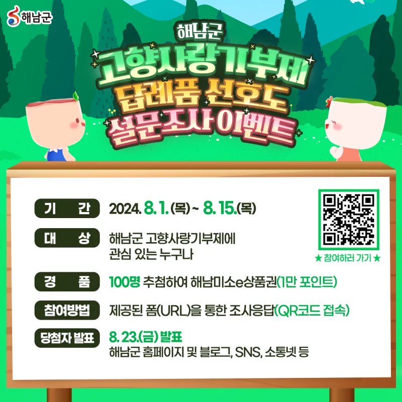 🍀해남군 고향사랑기부제 답례품 선호도 설문조사 이벤트에 많은 참여 바랍니다 :)