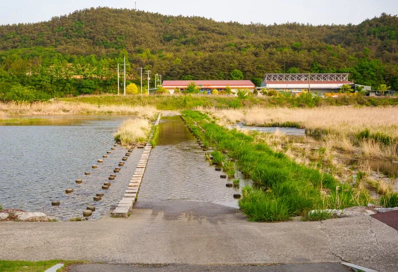 자호천을 건너갈 수 있는 징검다리도 설치가 되어 있습니다.