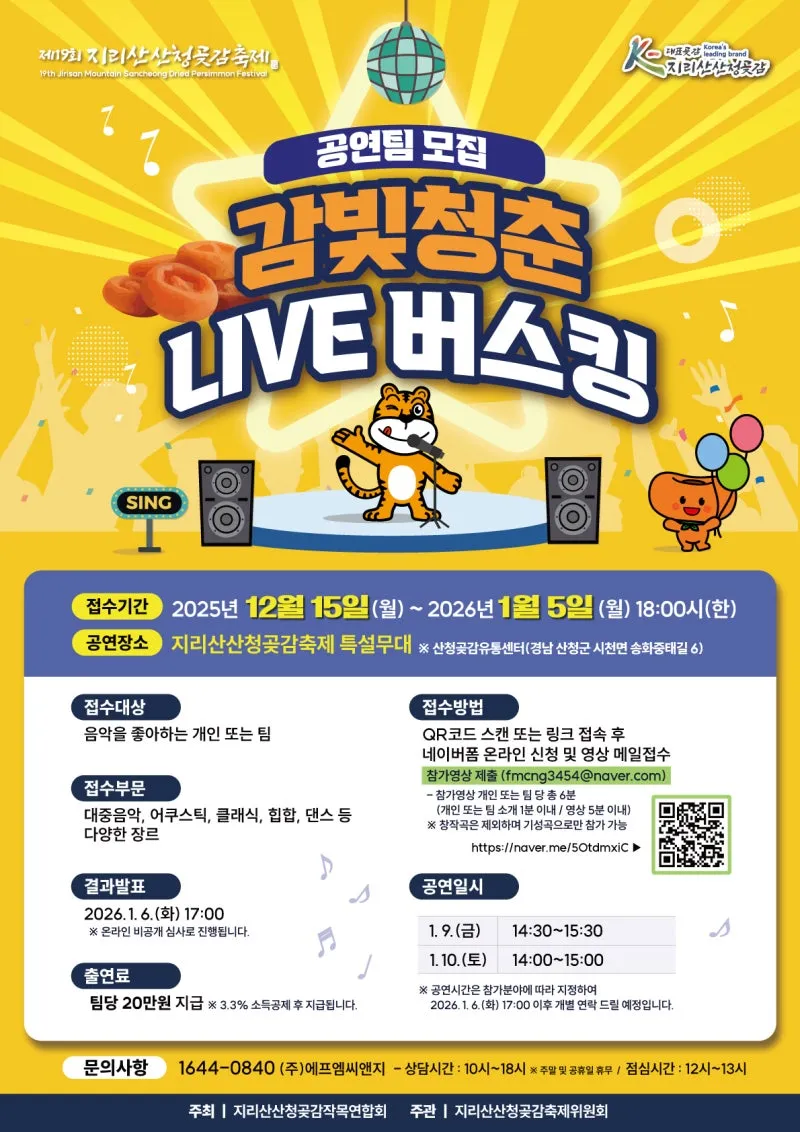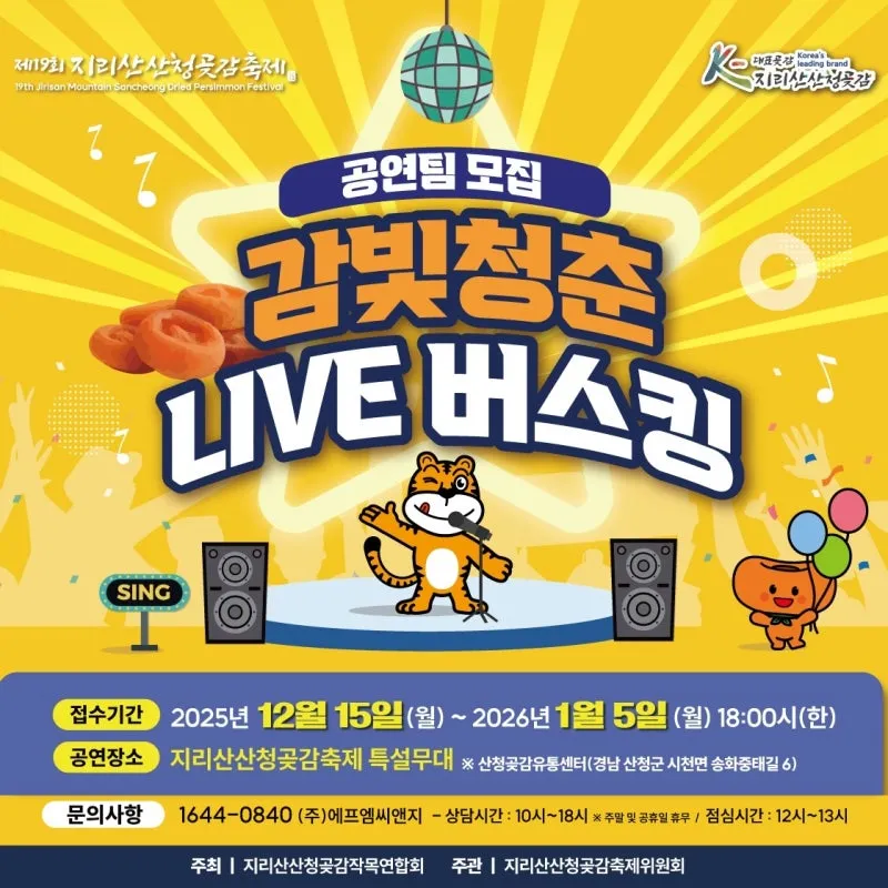 지리산산청곶감축제 감빛청춘 LIVE 버스킹 참가팀 모집!