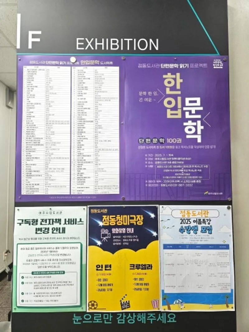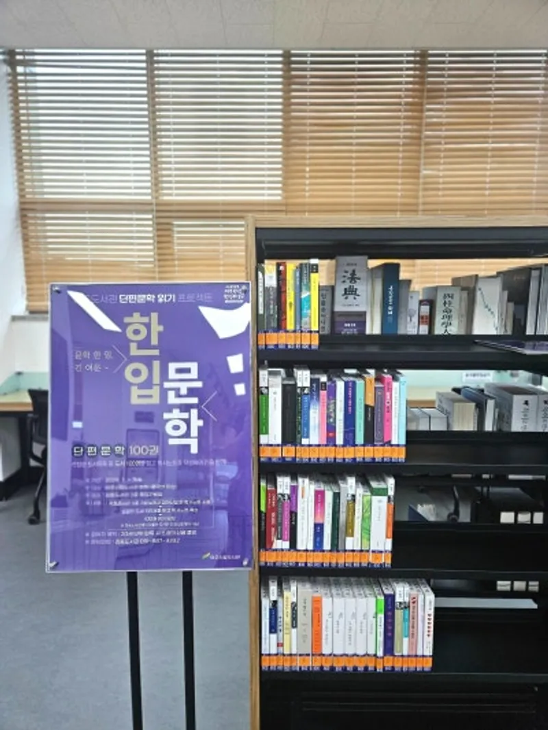 점동도서관은 성인을 위한 ‘한입문학’ 프로젝트도 마련했다. ‘한입문학’은 유튜브 쇼츠처럼 짧은 콘텐츠에 익숙한 시대 흐름에 맞춰, 긴 장편소설보다 짧고 임팩트 있는 단편문학으로 책 읽기에 입문하자는 취지의 독서 프로그램이다.