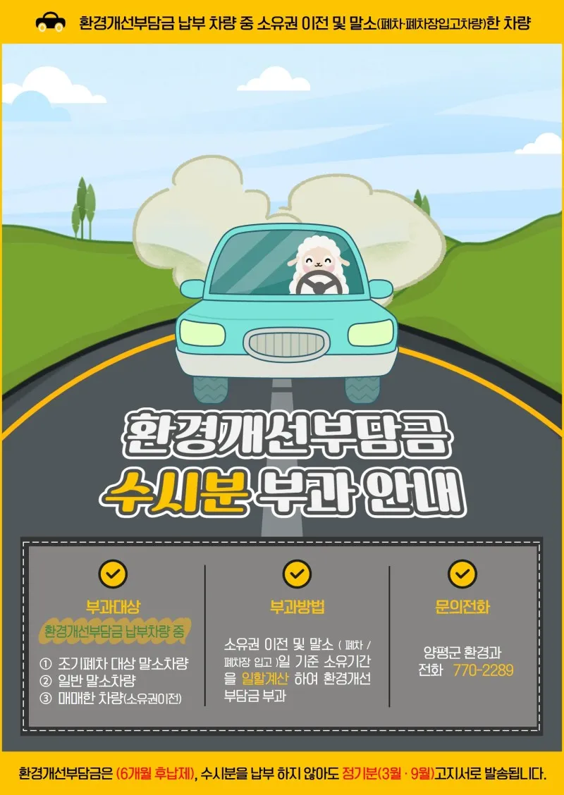 양평군 환경개선부담금 수시부과 방식 도입 안내