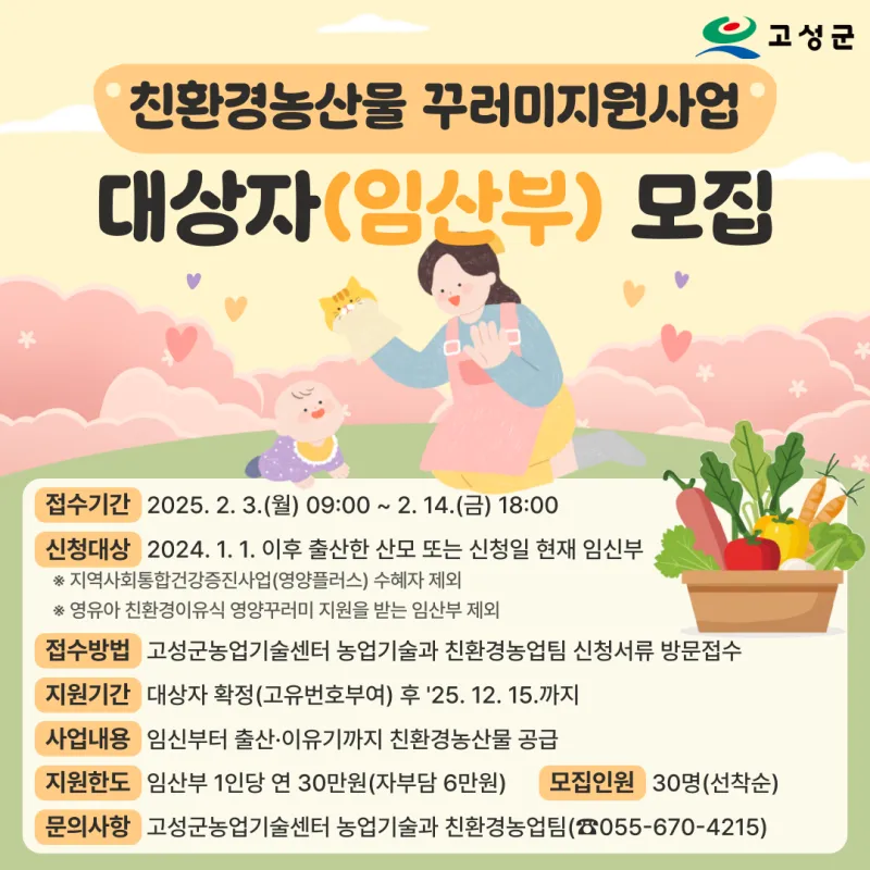 「친환경농산물 꾸러미지원사업」대상자(임산부)를 모집해요!